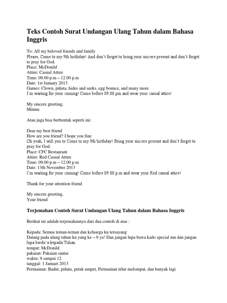 Contoh undangan menggunakan bahasa inggris contoh isi format 560 x 353 contoh surat undangan ulang tahun bahasa inggris format 532 x 380 pixel download contoh undangan bahasa inggris singkat contoh isi undangan format 501 x 687 pixel download update contoh. Contoh undangan tidak resmi (ulang tahun) dalam bahasa inggris. Hd wallpaper undangan resmi wallpaper download contoh surat undangan resmi yang sesuai kebutuhan png saran id. Galeri contoh surat pribadi tentang ulang tahun terbaik 2019. Your smile at my birthday party will be the best birthday present for me.